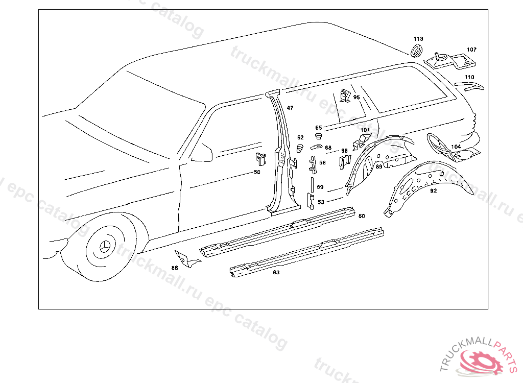 FLOOR LATERAL REAR RIGHT, 000 081618 003 040184 007 035961 102,103 061748 105 077758