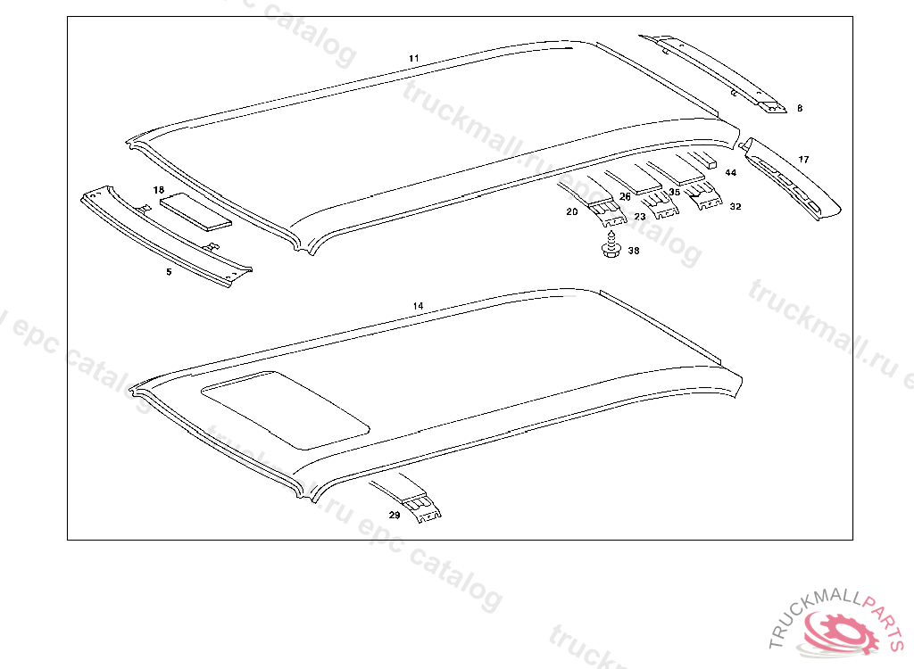 ROOF PANELLING WITH BORES USED FOR ROOF RAILING FIXTURE, FROM CHASSIS 123.086 005834 093 006816 183 011882 190 018129 283 000347