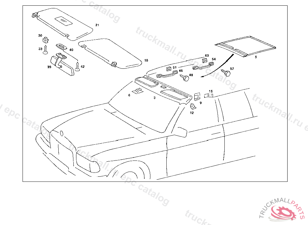 SUN VISOR LEFT,WITH MIRROR, 023 007681 033 008194 123 004455 130 006877 NO.8227 INO.8227 INO.8209 INO.8210 INO.8211 INO.6054 I