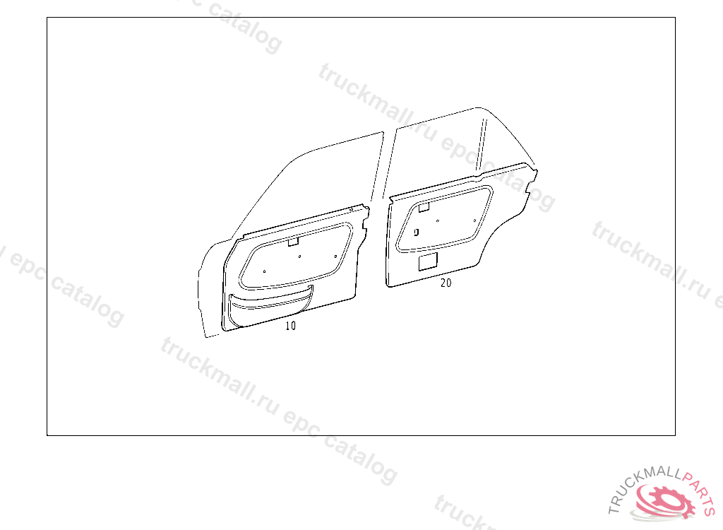 PANELLING RIGHT REAR DOOR, USED WITH FABRIC TRIM, FROM MODEL YEAR'83