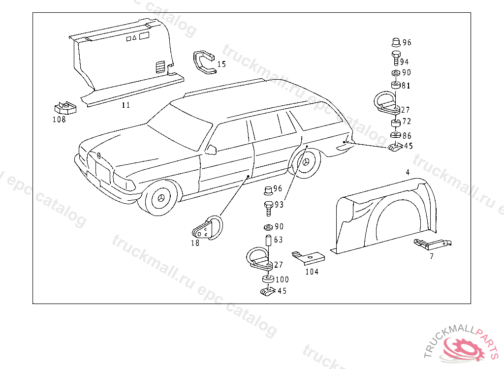 SPACER TUBE BRACKET TO REAR WHEELHOUSE, FROM CHASSIS 123.093 014792 123.183 028940 123.190 030489 123.193 017449 123.280 010007 123.283 021200