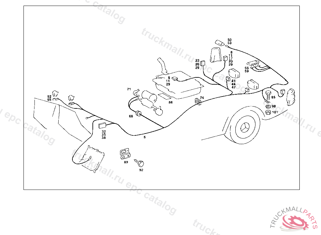 CABLE HARNESS TAIL LAMPS, 083 006082 EXCEPT FOR 006121-006245 086 004625 EXCEPT FOR 004657-004764 093 005620 EXCEPT FOR 005654-005746 183 010008 EXCEPT FOR 010054-010192 190 015182 EXCEPT FOR 015268-015514