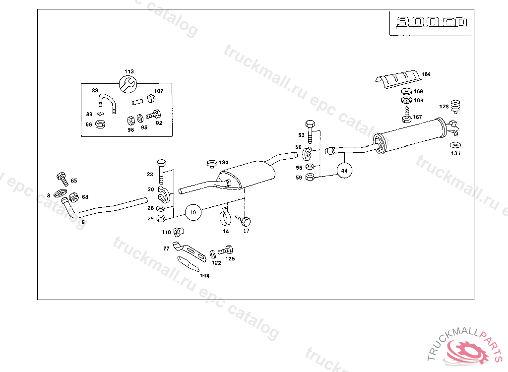 EXHAUST MUFFLER WITH PIPE REAR, 033 063891 FEDERAL ALSO INSTALLED ON 055239,061638,061696,062935,062964. 033 068873 CALIFORNIA ALSO INSTALLED ON 063285,063290 123 149292-410935 FEDERAL ALSO INSTALLED ON 142621,143256,143516,144274,144277,144302,144557,145496,146832,147929,149171,149201,149219. 123 149279-410935 CALIFORNIA ALSO INSTALLED ON 135619,144819 130 164521 FEDERAL ALSO INSTALLED ON 158847,159667,161729,161879,164216,164226,164273,164333,164372,164387,164410. 130 164507 CALIFORNIEN ALSO INSTALLED ON 138827,160568,161559,164179,164227,164306,164312,164324,164384,164391,164409,164482.