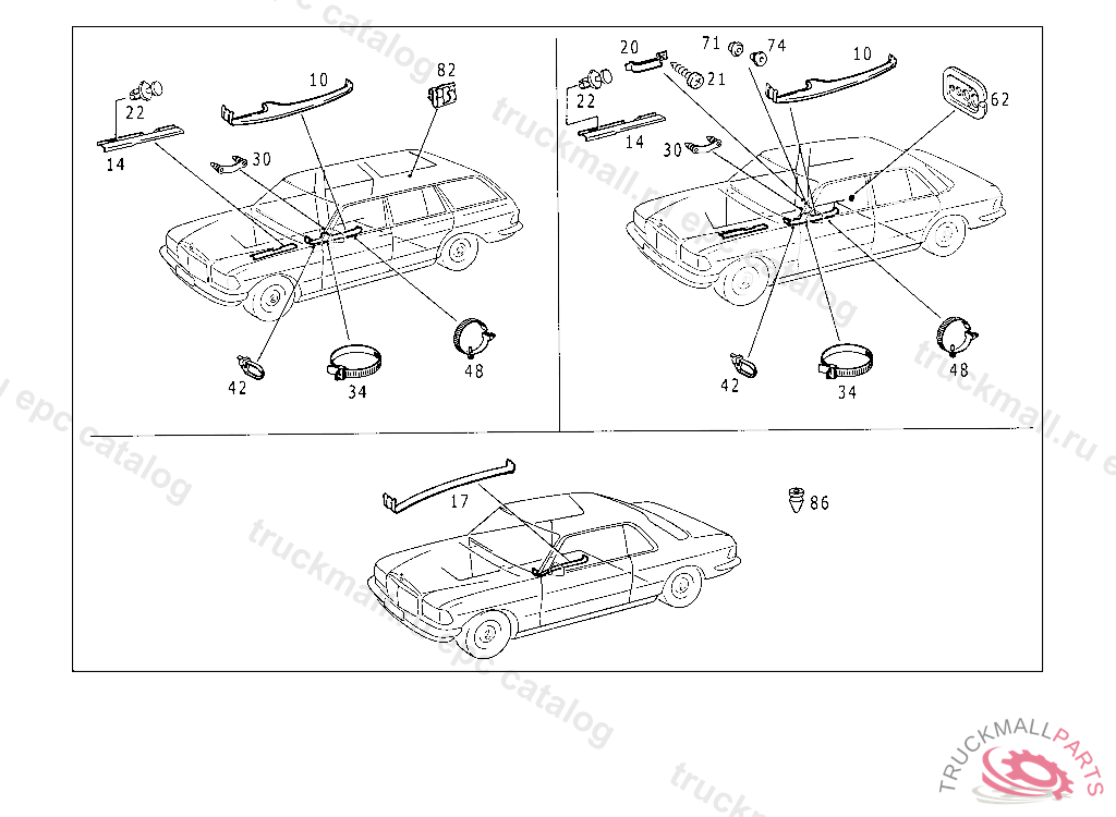 COVERING MAIN CABLE HARNESS TO REAR FLOOR, 003 114241 007 SWEDEN 105492 007 SWITZERLAND 104788 093 NOT FUER AUSTRALIA,SWITZERLAND 012199 093 AUSTRALIA 012211 ALSO INSTALLED ON 012054 093 SWITZERLAND 012349 ALSO INSTALLED ON 012051 102 356391 103 358799 105 NOT FOR SWEDEN 288917 EXCEPT FOR 290205 105 SWEDEN 268063 183 NOT FOR SWEDEN 023774 183 SWEDEN 023861 190 NOT FOR AUSTRALIA 027391 190 AUSTRALIA 027354 193 NOT FOR JAPAN,SWEDEN 012499 193 JAPAN 012693 ALSO INSTALLED ON 012205 193 SWEDEN 012544 200 121389 280 NOT FOR SWITZERLAND 10/50,12/52 005837 20/60,22/62 006006 280 SWITZERLAND 10/50 006000 ALSO INSTALLED ON 005533 12/52 006001 ALSO INSTALLED ON 005529 283 NOT FOR SWITZERLAND 10/50,12/52 013271 20/60,22/62 013345 283 SWITZERLAND 10/50 013558 12/52 014531 ALSO INSTALLED ON 012929