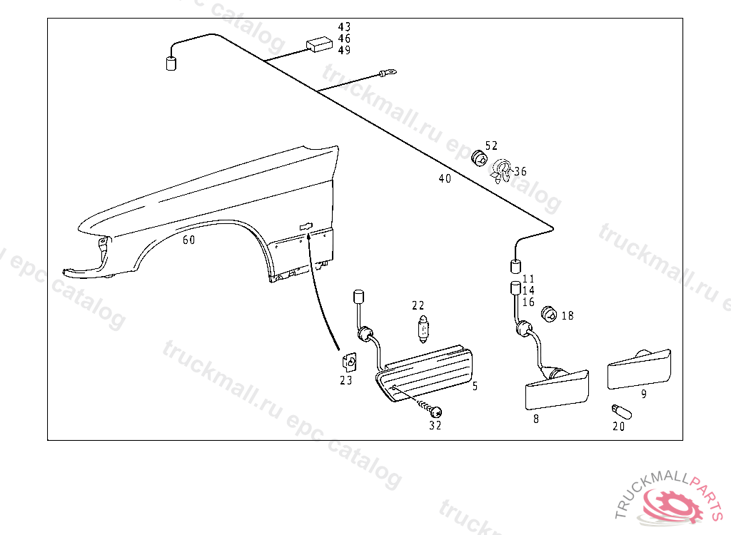 LOCK BLINKER LAMP TO FENDER, FROM CHASSIS 201.F 000476 201.A 248550 201.F 146945 201.034 F 167881