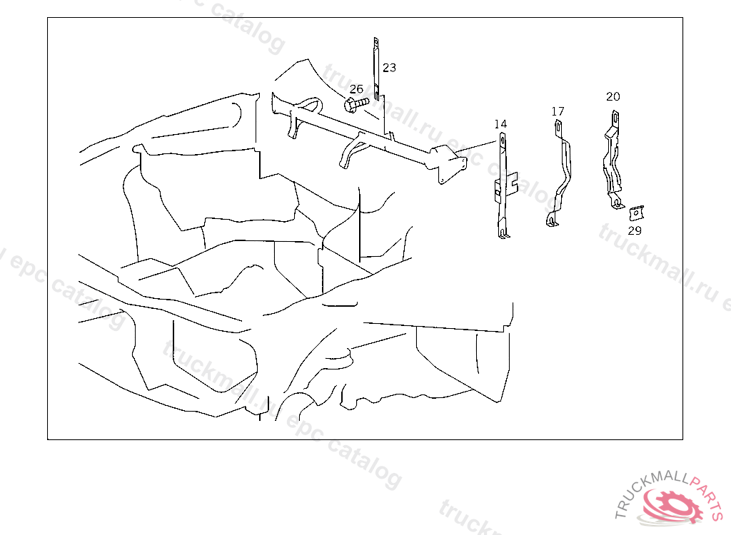 STRUT BETWEEN TUNNEL AND CROSS MEMBER BELOW INSTRUMENT PANEL