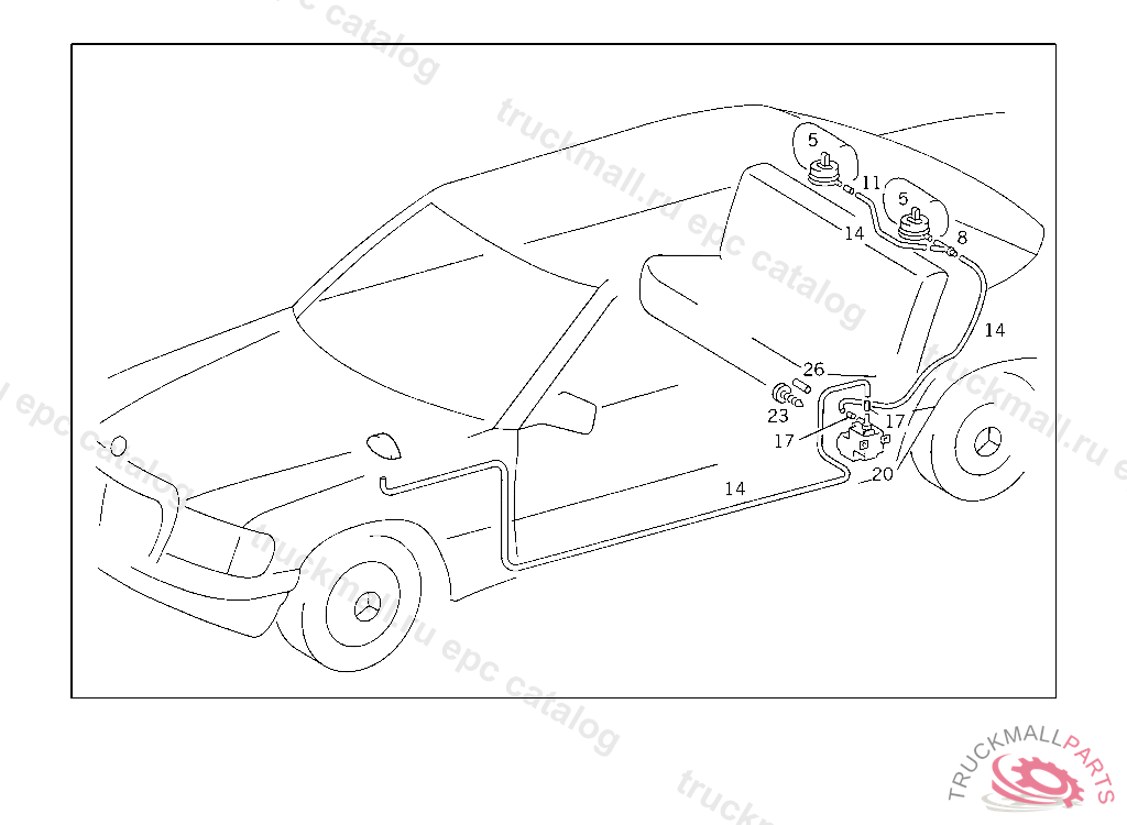 PIPE LINE FROM CHECK VALVE DISTRIBUTOR TO SUPPLY TANK 500 MM, ORDER BY THE METER 114.010 FROM CHASSIS 031062,114.015,017 FROM CHASSIS 033609,114.021 FROM CHASSIS 001552,114.022 FROM CHASSIS 000843,114.023 FR OM CHASSIS 000001 115.010 FROM CHASSIS 034113,115.015 FROM CHASSIS 032215 114.010,021,022 UNTIL PRODUCTION STOP, 114.011 UP TO CHASSIS 108425, 114.015,017 UP TO CHASSIS 245853, 114.023 UP TO CHASSIS 100866 AND FOOTN.63