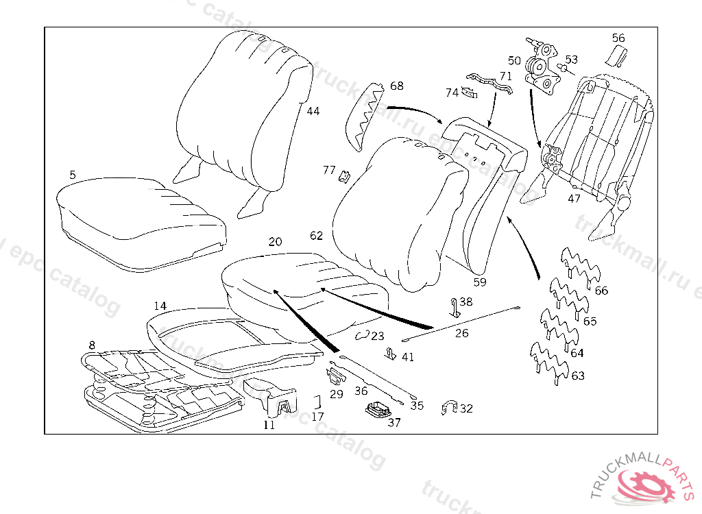 SEAT CUSHION MB-TEX,RIGHT,LESS HIGHT ADJUSTMENT,NO.9045I NO.5070I NO.8310I NO.8320I NO.8411I NO.6121I NO.3111I NO.7095I I