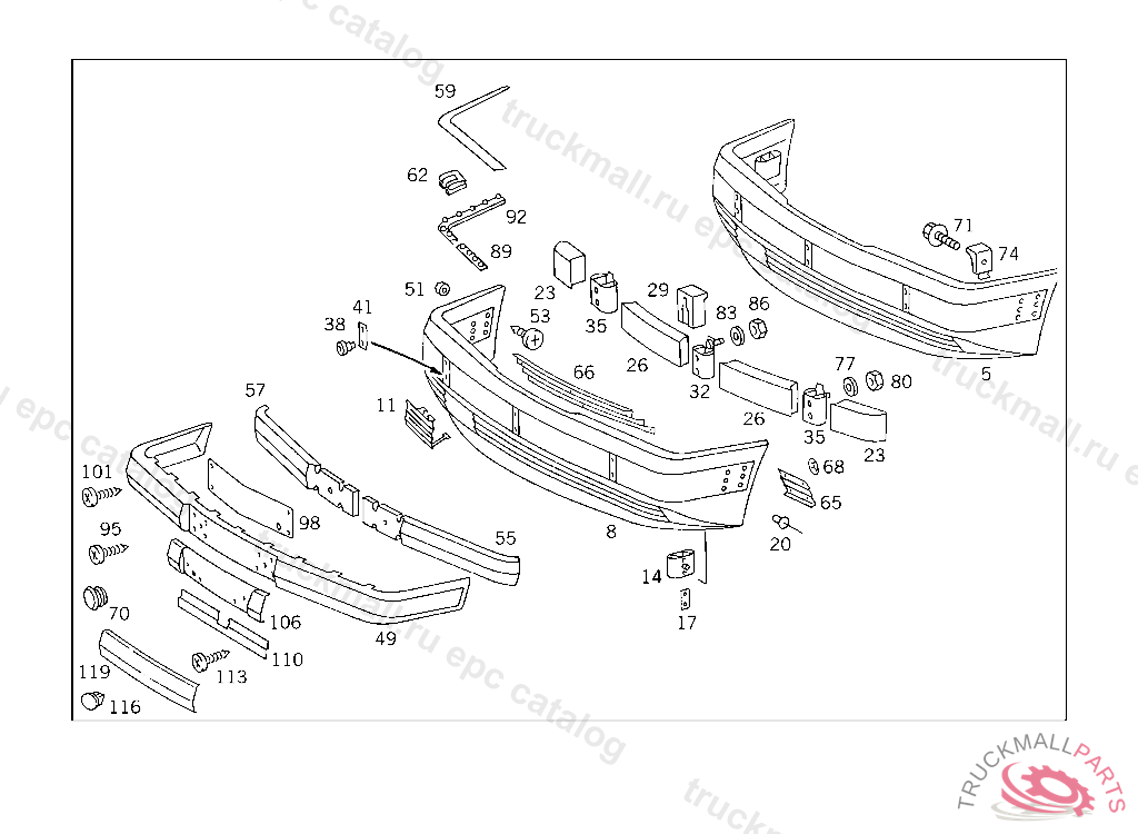 PANELLING FRONT BUMPER,OPEN VERSION, TO BE PAINTED PRIOR TO INSTALLATION FOR COLOR NUMBERS AND PAINT CODES USED FOR OUTSIDE PARTS,SEE FOOTNOTE 901
