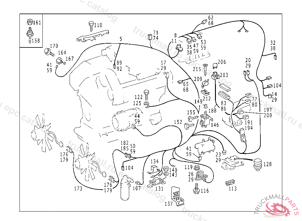 CABLE HARNESS ENGINE CABLE HARNESS,BODY MOUNTED, USED WITHOUT AIR CONDITIONER FOR USE WITHOUT ACCELERATION SKID CONTROL(A S R)C 013142