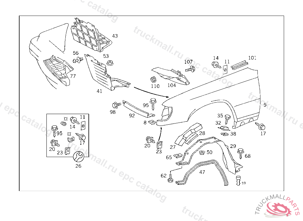 SCREW PARTITION PANEL TO FRONT FENDER, 003 109847 007 098846 086 007461 093 010729 102,103 304111 105 266568 183 019766 190 024811 193 007801 200 082947 280 003503 283 008887