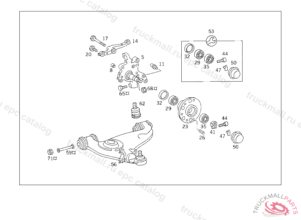 LOCKING CAP FRONT WHEEL HUB TO STEERING KNUCKLE