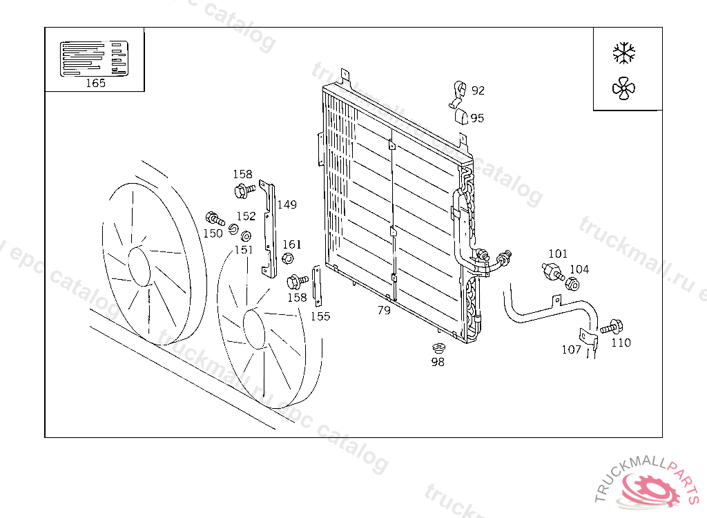 INTERMEDIATE LAYER CONDENSER TO STIFFENING AND TO FRONT CROSS MEMBER
