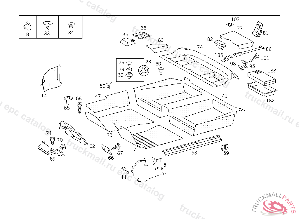 LINING REAR FLOOR VELOURS,B 740156 C 020764 EXCEPT FOR B 891779 - C 020763 WITH CODE 859NO.7145I NO.5088I NO.8E42I NO.8423I NO.8424I NO.6129I NO.3117I NO.7144I IIIIIIII