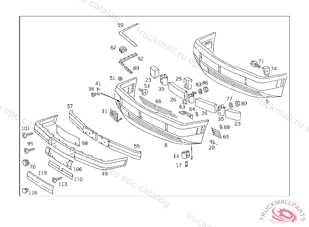 PANELLING FRONT BUMPER,OPEN VERSION, TO BE PAINTED PRIOR TO INSTALLATION FOR COLOR NUMBERS AND PAINT CODES USED FOR OUTSIDE PARTS,SEE FOOTNOTE 901
