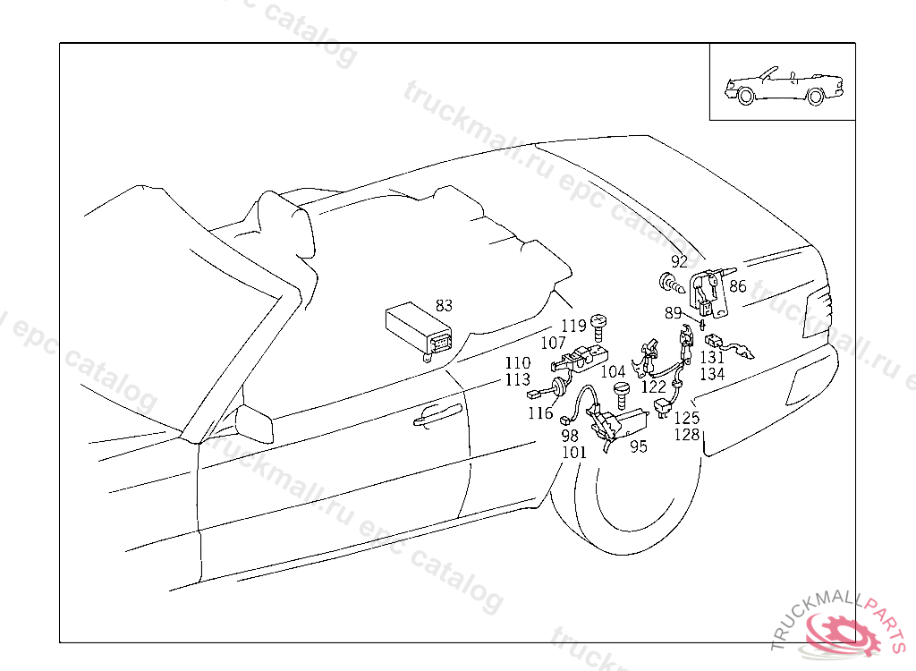 CONTROL UNIT ON FLOOR BELOW REAR SEAT,INSIDE RIGHT, HYDRAULIC FOLDING TOP CONTROL AND ROLL-OVER BARB 993872