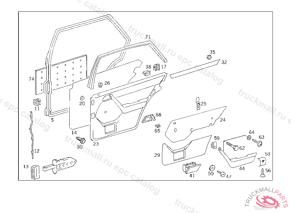 PANELLING RIGHT REAR DOOR, USED WITH IMITATION LEATHER TRIM,NO.9045I NO.5070I NO.8310I NO.8320I NO.8411I NO.6121I NO.3111I NO.7095I I