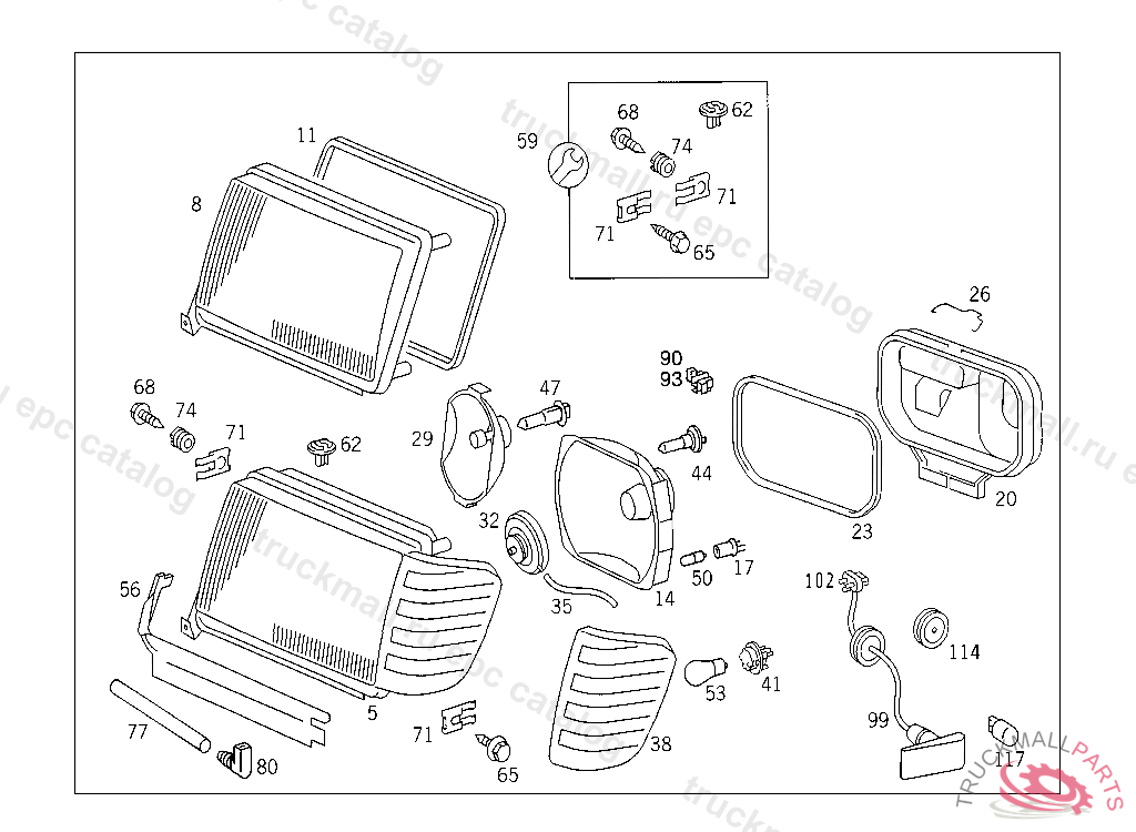 LIGHTING UNIT LEFT, R.H. TRAFFIC, USED W/WHITE BLINKER LAMP BOSCH, C 020765 ALSO INSTALLED ON B 891779 - C 020763 WITH CODE 859