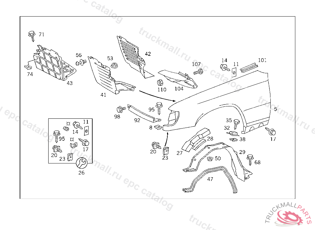 SCREW PARTITION PANEL TO FRONT FENDER, 003 109847 007 098846 086 007461 093 010729 102,103 304111 105 266568 183 019766 190 024811 193 007801 200 082947 280 003503 283 008887