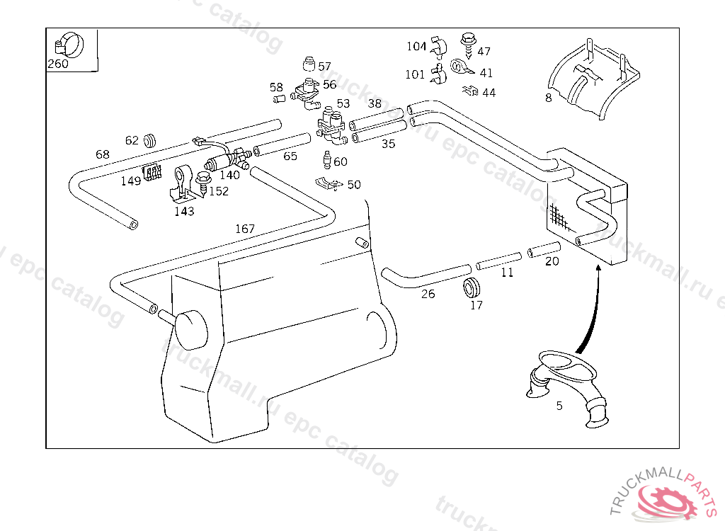 HOSE FROM RIGHT HEAT EXCHANGER TO WATER VALVE
