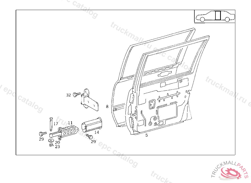 SCREW REAR DOORS TO CENTRAL PILLAR HINGES