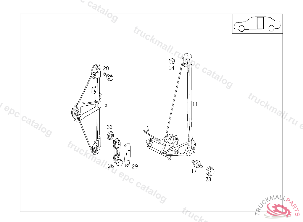 WINDOW REGULATOR MANUAL, RIGHT CENTRAL DOOR