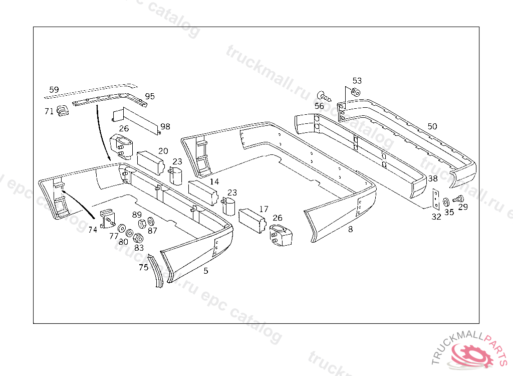 PANELLING REAR BUMPER, TO BE PAINTED PRIOR TO INSTALLATION FOR COLOR NUMBERS AND PAINT CODES USED FOR OUTSIDE PARTS,SEE FOOTNOTE 901