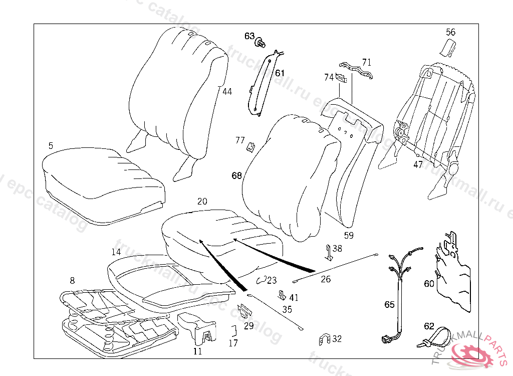 BACKREST RIGHT SEAT, NO.9045I NO.5070I NO.8310I NO.8320I NO.8411I NO.6093 AI NO.3111I NO.7095 CI I NO.6121 B I NO.7188 DI