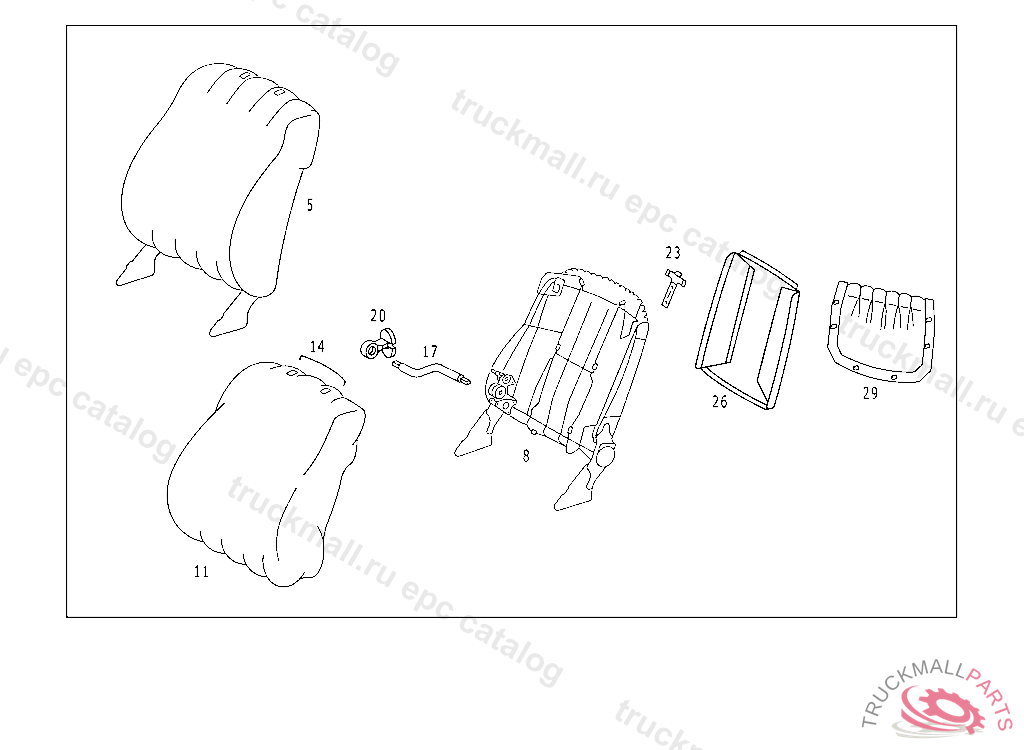 BACKREST RIGHT SEAT, NO.9A95I NO.5B08I NO.8F09I .......I NO.8F05I .......I .......I NO.7C42I