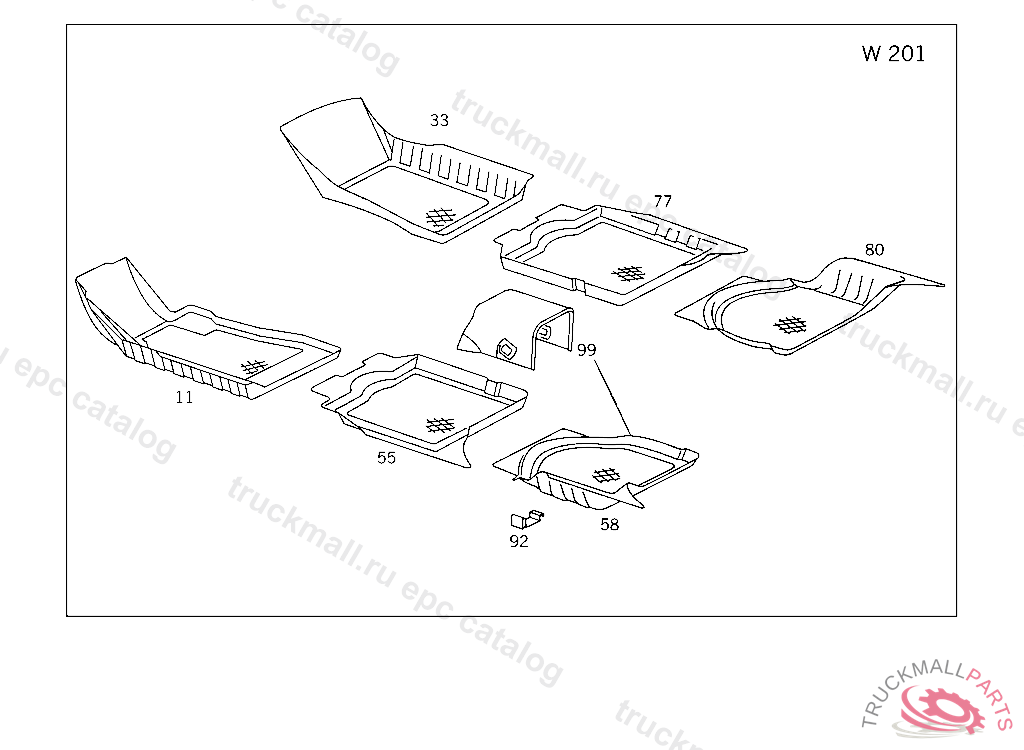 LINING REAR FLOOR,RIGHT, 201 A 450983 201 F 513803 124 A 777516 124 F 078642