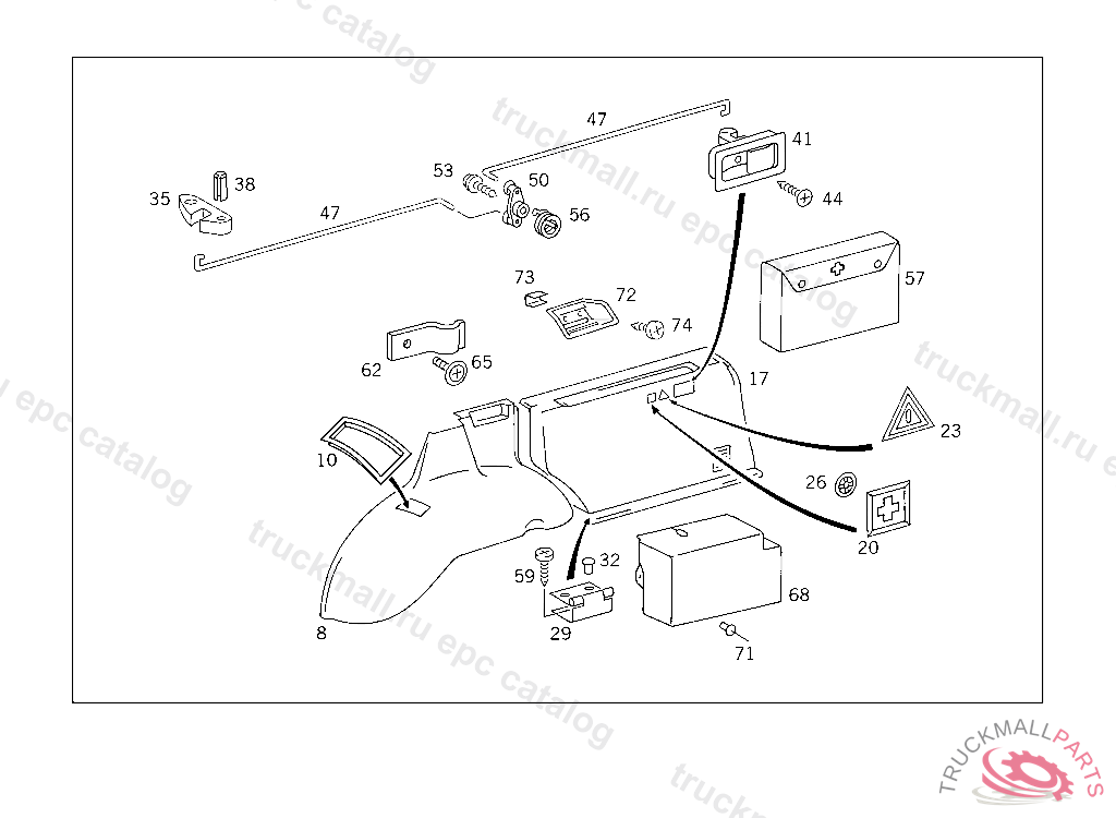 LOCKING MECHANISM LOADING COMPARTMENT,RIGHT, FOR FIRST AID BOX AND WARNING TRIANGLE