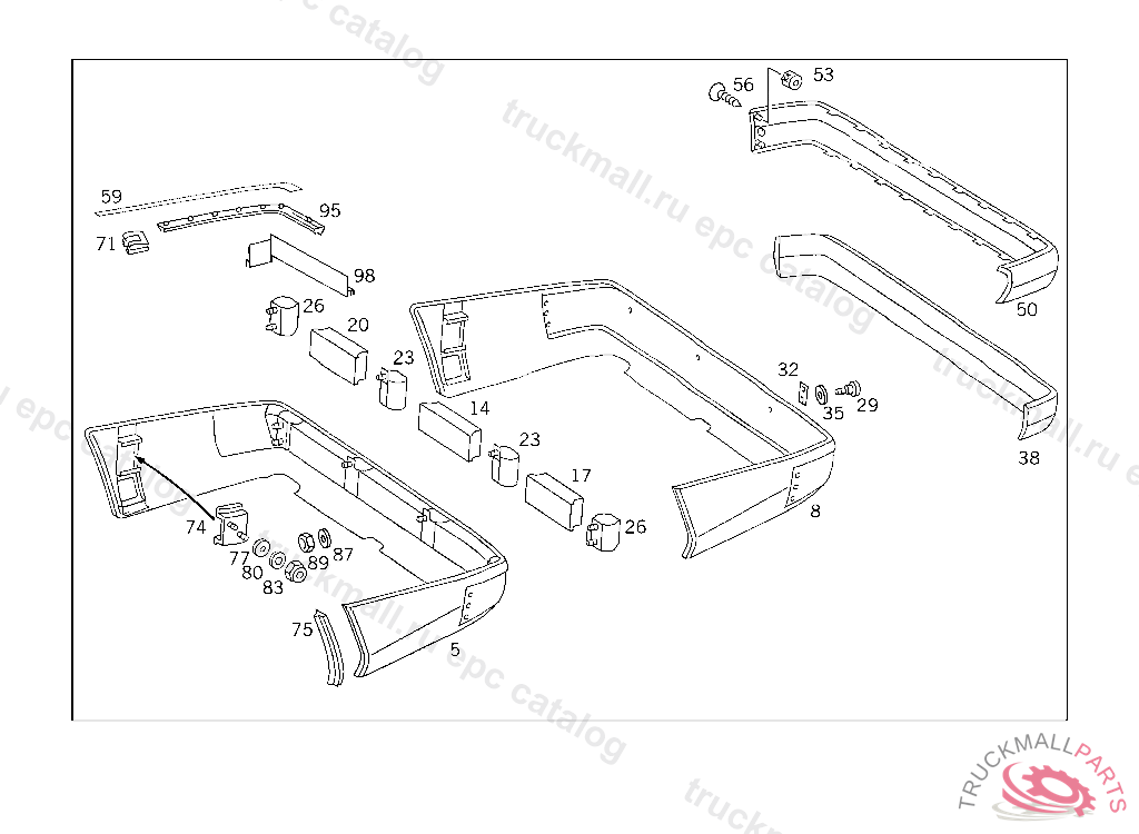 PANELLING REAR BUMPER, TO BE PAINTED PRIOR TO INSTALLATION FOR COLOR NUMBERS AND PAINT CODES USED FOR OUTSIDE PARTS,SEE FOOTNOTE 901