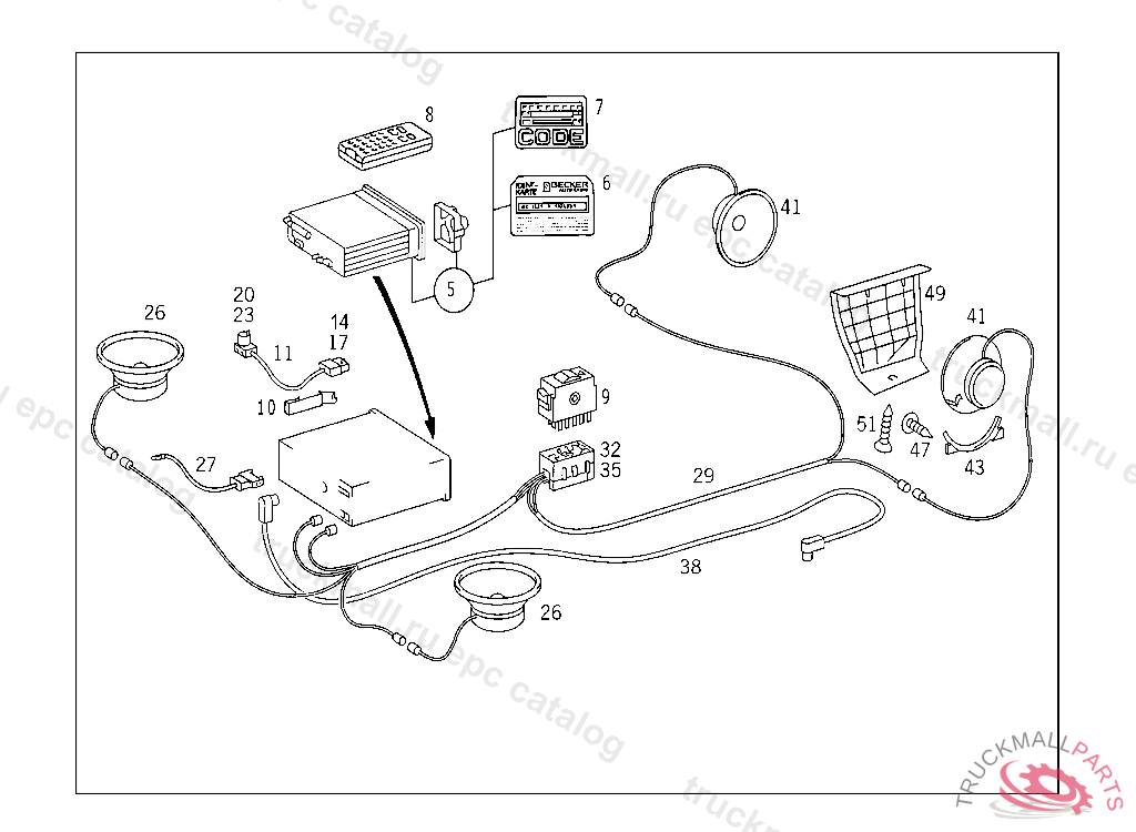 ELECTRIC CABLE FRONT AND REAR LOUDSPEAKERS AND FADER CONTROL, ONLY USED WITH MONO-COMPONENT SYSTEM