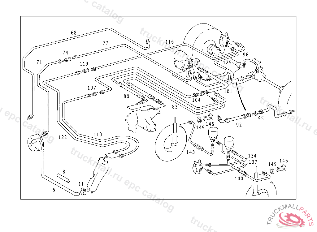 LINE FROM HEIGHT CONTROL VALVE TO RIGHT SPRING-LOADED BRAKE UNIT