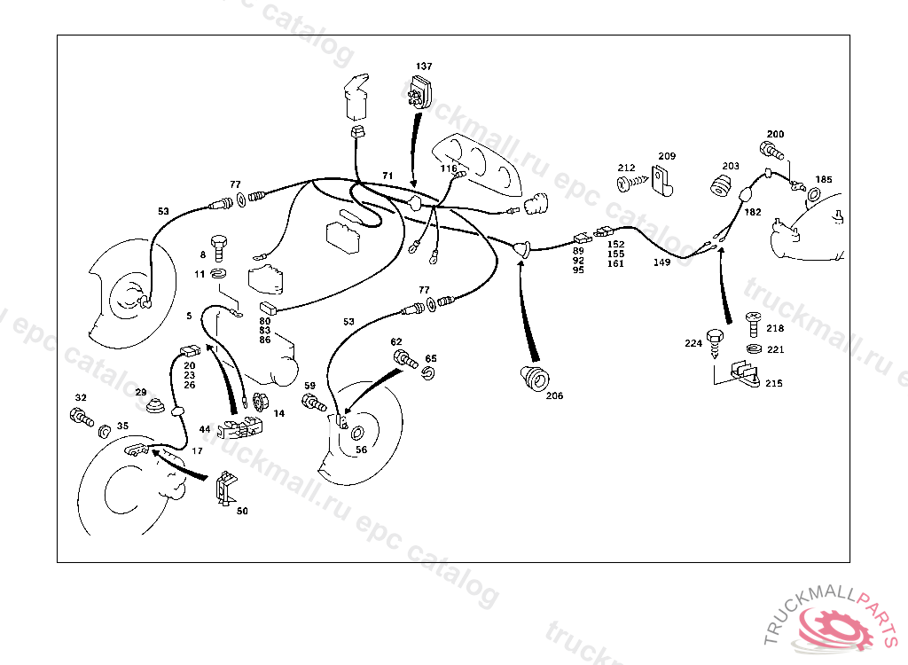 CABLE HARNESS BRAKE LINING WEAR INDICATOR,RIGHT, 086 006454 093 007617 183 013160 190 019851 283 001367 000 193138 003 095174 007 078124 102,103 201155 105 206919 200 001639