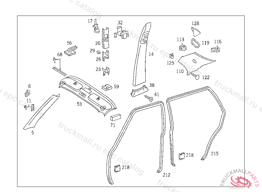 PANELLING CENTRAL PILLAR,RIGHT,NO.9045I NO.5070I NO.8310I NO.8320I NO.8411I NO.6093 AI NO.3111I NO.7095I I NO.6121 BI