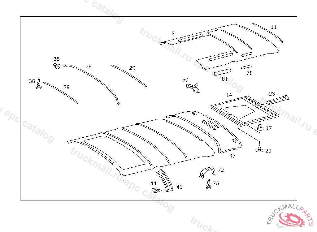 HEADLINER LESS BOWS,LESS SLIDING ROOF OPENING,NO.7137I NO.7137I NO.8420I NO.8420I NO.8417I NO.8417I NO.8417I NO.7137I