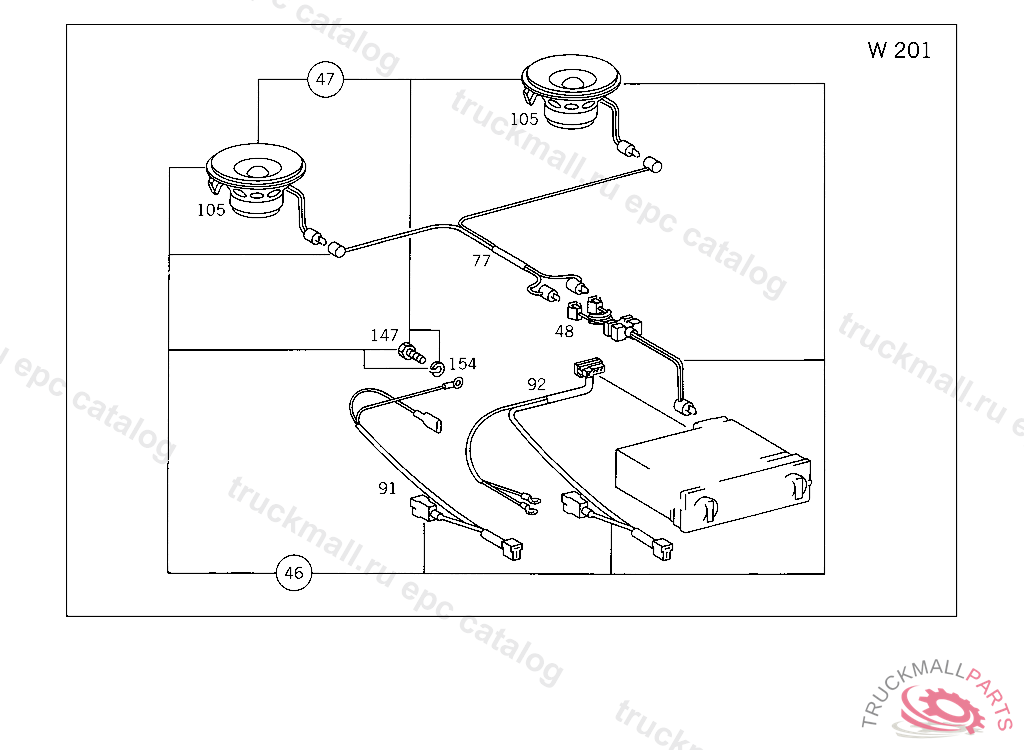 ELECTRIC CABLE LOUDSPEAKER CONNECTION CABLE, FROM CHASSIS 116.020 037452 116.024,025 039538 116.028,029 025862 116.032,033 034710
