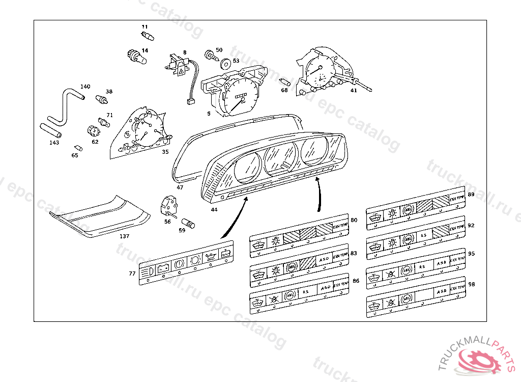 INSTRUMENT CLUSTER , FIRST EXHAUST STOCK OF OLD PARTS UP TO IDENT NO. A 350464, Replaced By: A0045401547
