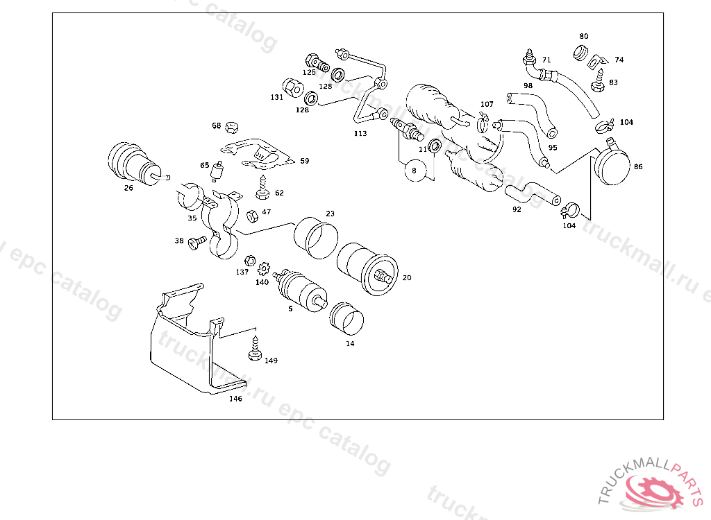 HOSE FROM VENT PIPE TO FILLER NECK 400 MM, 000 098845 003 049444 007 042062 083 000290 086 000150 093 000121 102 079297 103 079274 105 099374 183 000405 190 000351