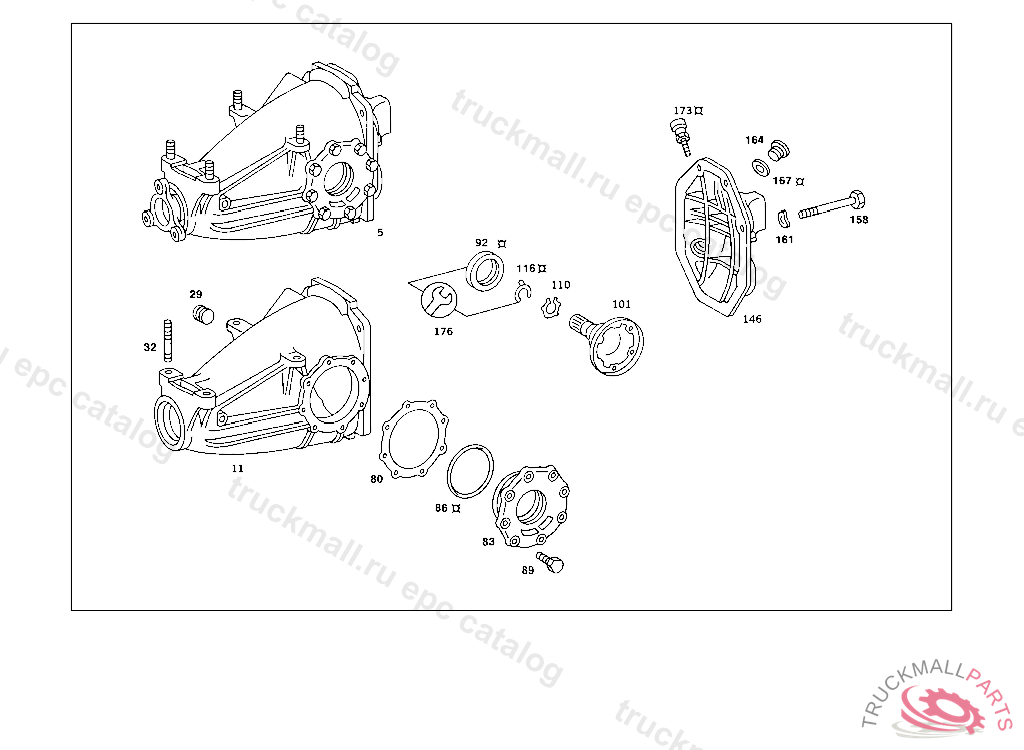 SEAL RING AXLE SHAFT, REAR AXLE HOUSING WITH DIFFERENTIAL AND WITH SIDE BEARING CAPS 003 103238 007 087550 086 007105 093 008991 102,103 240182 105 231728 183 015394 190 021956 193 002092 200 027294 280 000776 283 003631