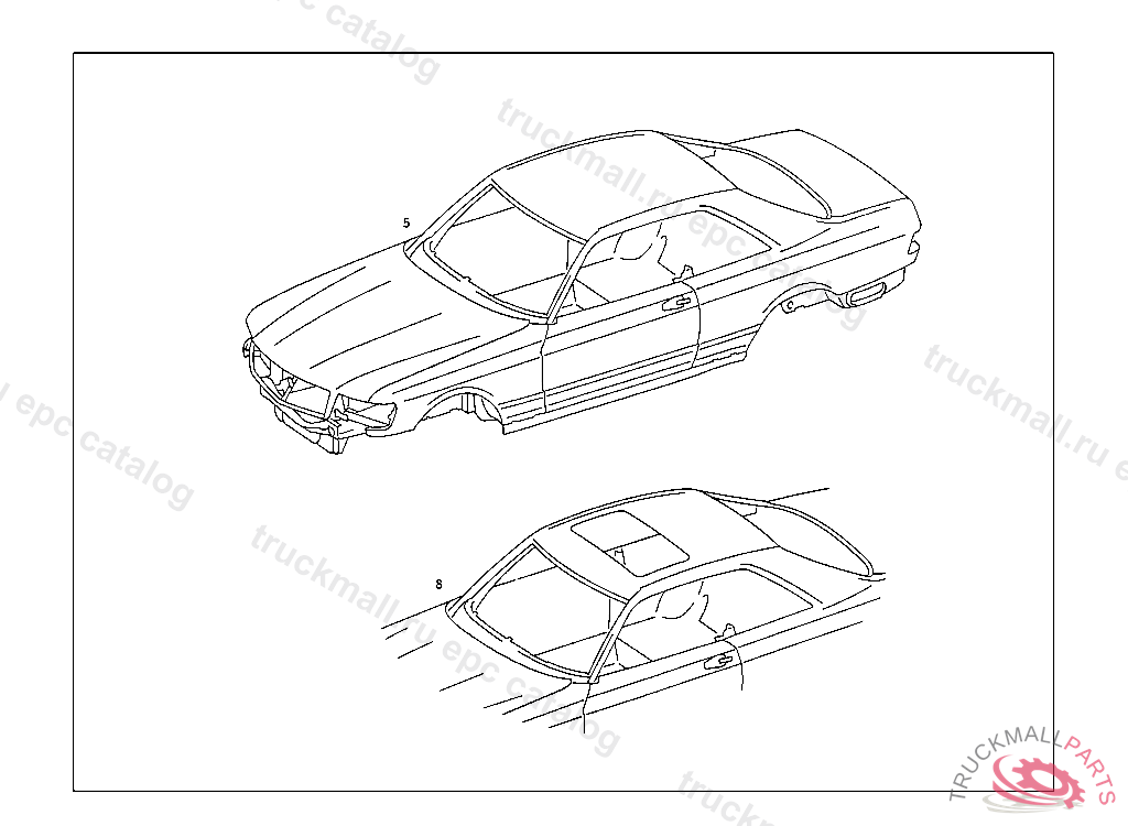 BODY SHELL WITH SLIDING ROOF, WHEN ORDERING, QUOTE IN ADDITION TO CHASSIS NO.: WITH, OR LESS, SLIDING ROOF, STEERING COLUMN SHIFT, OR FLOOR SHIFT, WHEN PLACING ORDERS FOR STOCK,INDICATE CHASSIS MODEL, ATTENTIONUTHE BODY SHELL SUPPLIED CORRESPONDS TO THE NEWEST STATE OF PRODUCTION, THEREFORE,FOR ASSEMBLY AND FOR INTERIOR APPOINTMENTS OF THE NEW BODY SHELL ALWAYS ORDER THE NEWEST SPARE PARTS
