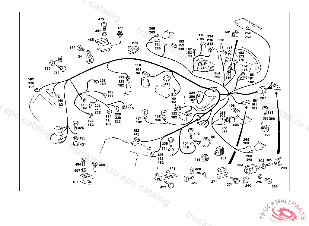 CABLE HARNESS , FIRST EXHAUST STOCK OF OLD PARTS UP TO IDENT NO. 043 003512 044 002795, Replaced By: A1265405305