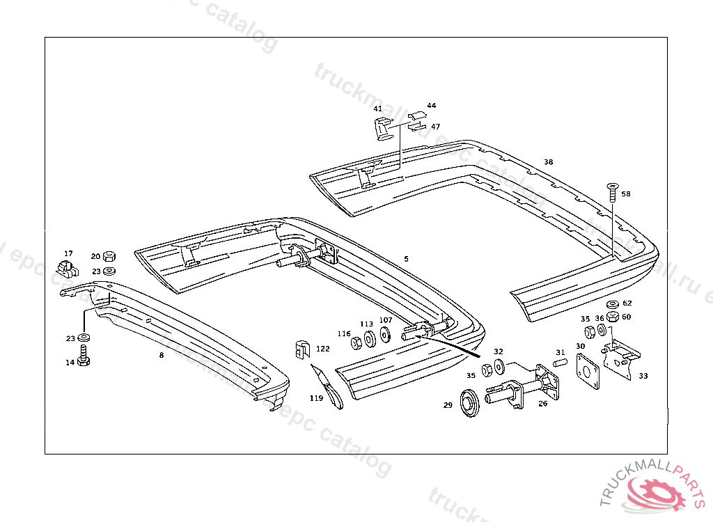 REAR BUMPER FACE BAR ,A 007435 EXHAUST STOCK OF OLD PART NUMBERS FIRST UP TO CHASSIS, A 175289, Replaced By: A1268801771