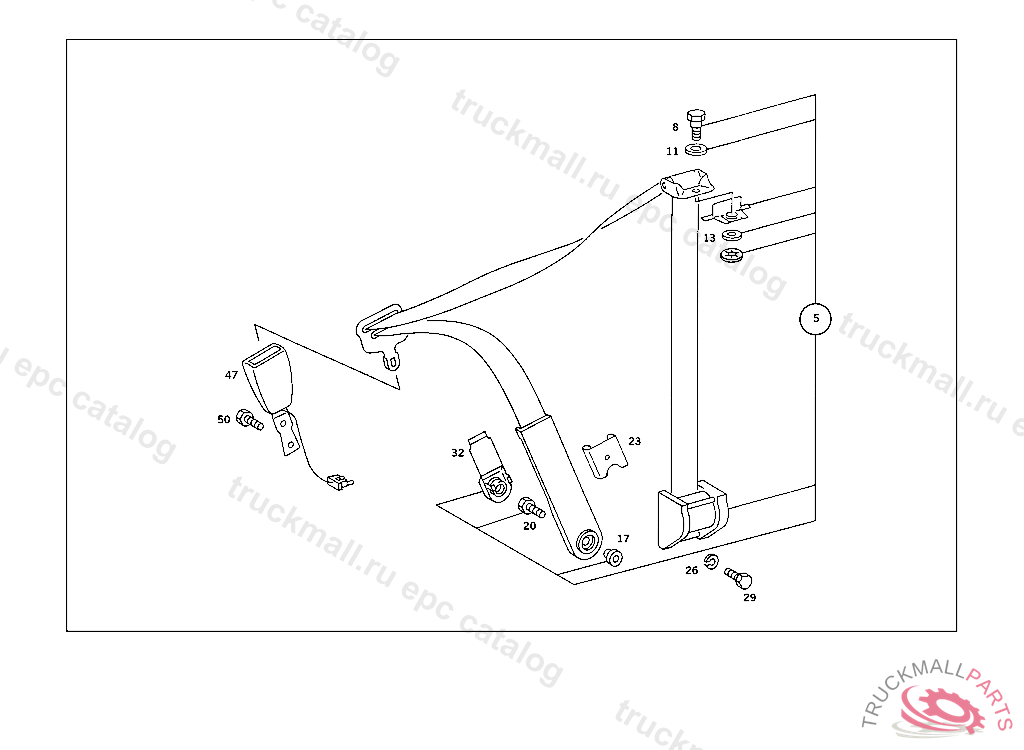 CAP SAFETY BELT SWIVEL FITTING TO SIDE MEMBER, 043 003133 050 001502 053 005956