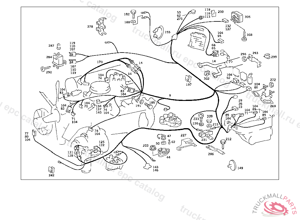 CABLE HARNESS , FIRST EXHAUST STOCK OF OLD PARTS UP TO IDENT NO.: A 303972, Replaced By: A1265403706