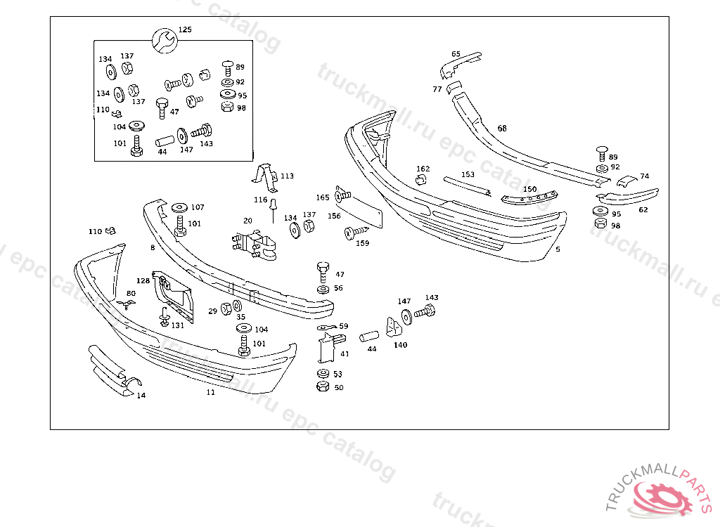 FRONT BUMPER FACE BAR , EXHAUST STOCK OF OLD PART NUMBERS FIRST UP TO IDENT NO.: A 485221, Replaced By: A1268802470