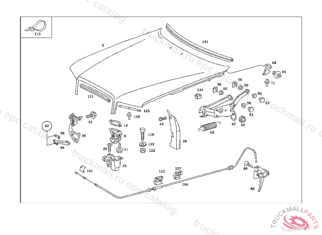 ENGINE HOOD RELEASE CABLE , FIRST EXHAUST STOCK OF OLD PARTS UP TO IDENT NO. A112121, Replaced By: A1268800859
