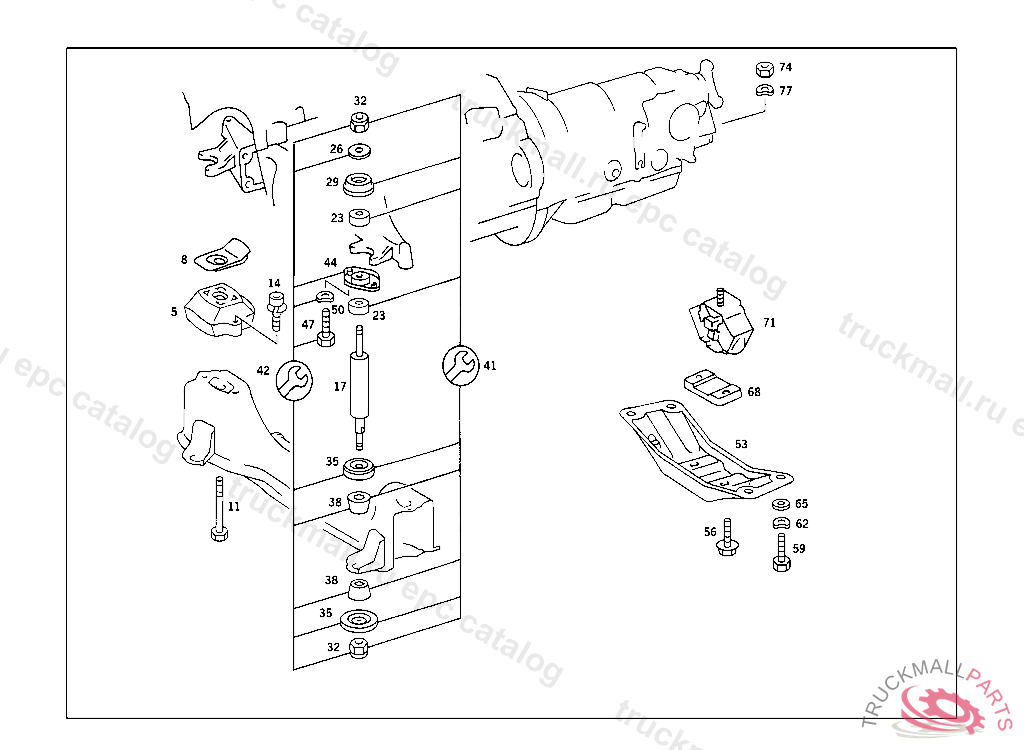 SCREW ENGINE FRONT MOUNTING TO ENGINE SUPPORT, 000 042295 003 019476 102,103 029067 105 038078