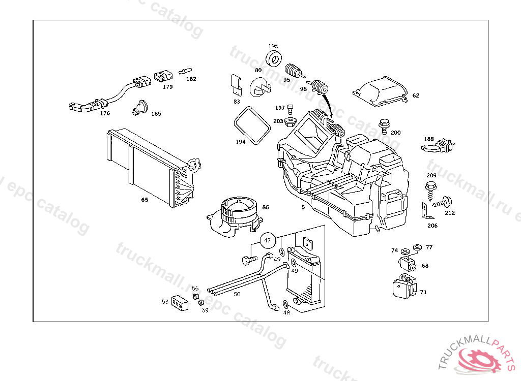 HEATER CASE , FIRST EXHAUST STOCK OF OLD PARTS UP TO IDENT NO. A 412434, Replaced By: A1268307362